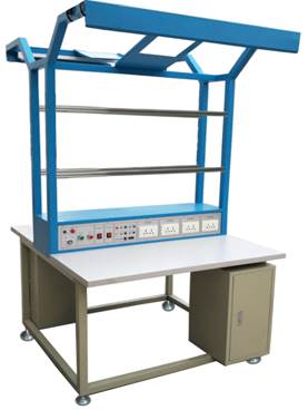 該實(shí)驗(yàn)臺底下設(shè)有單相相二線及“地”線(共3線)輸入接口,并配有啟動停止開關(guān),指示燈,保險座。