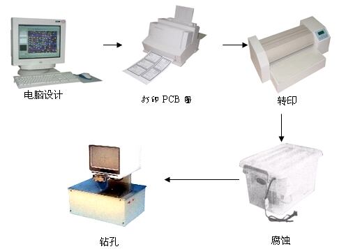 系統(tǒng)配置:計算機(jī)、激光打印機(jī)、轉(zhuǎn)印機(jī)、腐蝕桶、高速視頻鉆、轉(zhuǎn)印紙、合金鉆頭