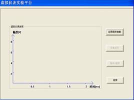 圖7 (1)“應(yīng)用程序裝載”, 自主的設(shè)計(jì)一些DSP應(yīng)用程序,從PC機(jī)上將DSP程序代碼加載到實(shí)驗(yàn)箱的DSP中,可以不需要仿真器。 (2)“運(yùn)行”,運(yùn)行下載到DSP中應(yīng)用程序,可以通過在實(shí)驗(yàn)箱的測試點(diǎn)上觀測。 (3)“結(jié)束”,結(jié)束DSP應(yīng)用實(shí)驗(yàn),退出該實(shí)驗(yàn)界面, 2.4 虛擬儀表 在“信號(hào)與系統(tǒng)在線設(shè)計(jì)程序”界面上選擇“虛擬儀表”按鈕,出現(xiàn)虛擬儀表實(shí)驗(yàn)平臺(tái)界面,如圖8所示。該實(shí)驗(yàn)將實(shí)驗(yàn)箱的信號(hào)采集到計(jì)算機(jī)端,在計(jì)算機(jī)顯示信號(hào)波形,完成一些儀表的功能?!疤摂M儀表實(shí)驗(yàn)平臺(tái)”包含“應(yīng)用程序裝載”、“采集信號(hào)”、“暫停/繼續(xù)”、“結(jié)束”等按鈕,以及采集到的信號(hào)波形顯示區(qū)域。 (1)“應(yīng)用程序裝載”, 將完成虛擬儀表功能的DSP代碼通過PC機(jī)加載到實(shí)驗(yàn)箱的DSP中。 (2)“采集信號(hào)”,運(yùn)行下載到DSP中應(yīng)用程序,將需要測試的信號(hào)采集到計(jì)算機(jī)端,并在計(jì)算機(jī)顯示器上顯示信號(hào)的波形。也可以將該信號(hào)通過儀表在實(shí)驗(yàn)箱的測試點(diǎn)上觀測,并進(jìn)行比較。 (3)“暫停/繼續(xù)”,為了觀測的方便,可以暫停對(duì)信號(hào)的采集和繼續(xù)采集顯示。 (4)“結(jié)束”,虛擬儀表實(shí)驗(yàn),退出該實(shí)驗(yàn)界面。