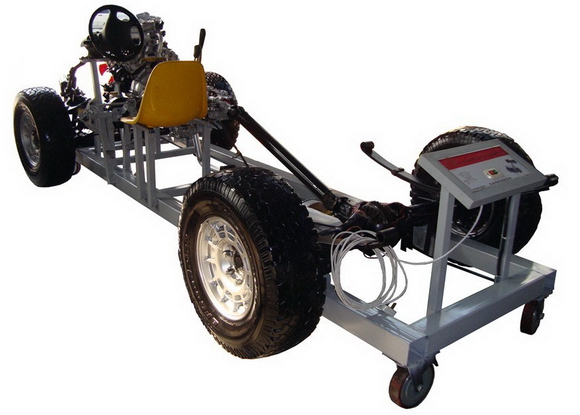 由美國克萊斯勒-吉普大切諾基 (Grand Cherokee)  原廠前后懸掛系統(tǒng)、變速器及換檔機(jī)構(gòu)、分動器、等行駛系統(tǒng)等主要部件、減震器、方向盤、輪胎、可移動式臺架等組成。采用克萊斯勒吉普大切諾基 (Grand Cherokee)原四輪驅(qū)動系統(tǒng)實物為基礎(chǔ),充分展示汽車四輪驅(qū)動系統(tǒng)的組成結(jié)構(gòu)和工作過程。適用干中高等職業(yè)技術(shù)院校、普通教育類學(xué)院和培訓(xùn)機(jī)構(gòu)對汽車底盤驅(qū)動系統(tǒng)的理論和維修實訓(xùn)的教學(xué)需要。功能齊全、操作方便、安全可靠。
