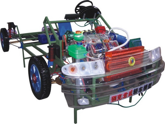 別克君威(凱越)轎車教學(xué)模型產(chǎn)品選用透明有機(jī)玻璃制作,內(nèi)部件均以硬質(zhì)塑料一次成型,用螺絲固定在金屬高溫烘漆而成的車架上。各總成部分都以壓模成形加 工,代替過去膠粘合的方法,使產(chǎn)品在強(qiáng)度上有很大提高。發(fā)動(dòng)機(jī)總成用電機(jī)驅(qū)動(dòng),在油門處設(shè)有調(diào)速裝置,能演示發(fā)動(dòng)機(jī)轉(zhuǎn)速高低。離合器分離明顯,操縱靈活,離合器外殼整體壓模而成,變速箱和各檔齒輪用各種顏色表示,換檔靈活,手制動(dòng)美觀。后橋外形壓模而成,內(nèi)中主減速、差速轉(zhuǎn)動(dòng)自如,輪轂剎蹄壓模成型,剎蹄可調(diào)節(jié),前橋輪鼓可調(diào)整,轉(zhuǎn)向裝置以及電瓶、油箱、水箱,制動(dòng)管路分布清楚一目了然。電路采用對(duì)插件前后分布,燈架、風(fēng)窗、儀表板、后燈架用透明有機(jī)玻璃壓模成整體美觀逼真。