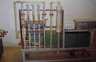 電滲析除鹽實驗裝置主要配置:電滲析模型,整流電源,倒極控制裝置,陰膜,陽膜,電極,PVC板鹽水箱,PVC板清水箱,PVC板酸洗水箱,防腐水泵,轉(zhuǎn)子流量計等;水處理量:〉200升/小時。
