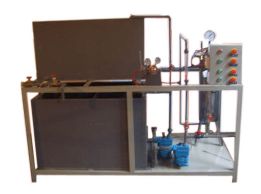 連續(xù)溶氣氣浮實驗裝置 型號:TF-QF/L 功能: 1、掌握氣浮凈水的原理、方法及流程。 2、了解溶氣水回流比對實驗效果的影響。 3、掌握“氣固比”及“釋氣量”的測定。 主要配置: 水箱、水泵、氣浮池、空壓機(jī)、溶氣罐、調(diào)壓閥、液位計、攪拌電機(jī)、調(diào)速器、流量計、壓力表、排污清洗系統(tǒng)、閥門、不銹鋼臺架及控制屏等。 技術(shù)參數(shù): 1、水箱:容積約30L,不銹鋼或優(yōu)質(zhì)防銹PVC材質(zhì)。 2、水泵:采用低噪聲無銹蝕環(huán)保型增壓水泵,高揚(yáng)程:10m,額定流量:12L/min,功率:90W。 3、平流式氣浮池:1000×500×500㎜, 透明有機(jī)玻璃材質(zhì)。 4、空壓機(jī):功率750W,排氣量36 L/min,工作壓力0.7MPa。 5、溶氣罐:不銹鋼材質(zhì),工作壓力0.2-0.3 Mpa。 6、攪拌電機(jī): 功率30W,無極調(diào)速,減速比1:5。 7、流量計:采用液體轉(zhuǎn)子流量計,量程:16-160L/h。 8、環(huán)境溫度:5℃~40℃,配電:220V, 1000W。 9、實驗臺架為304精致不銹鋼;裝置結(jié)構(gòu)緊湊,外形美觀,流程簡單,操作方便。 10、外形尺寸:1200×500×1500mm。 |